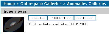 4.7 Modifying albums/filesWhen you are in admin mode there is a menu displayed next to each album